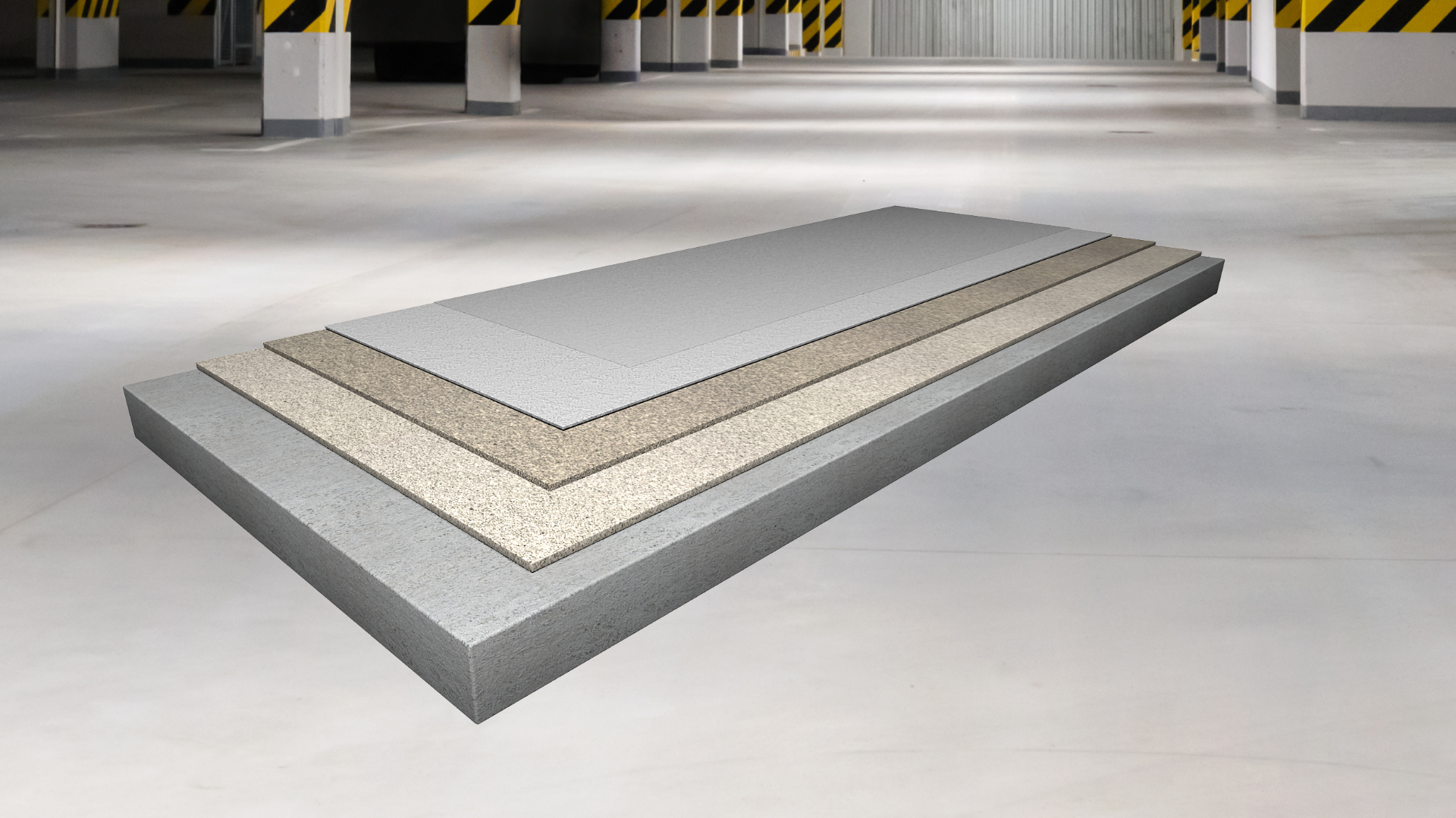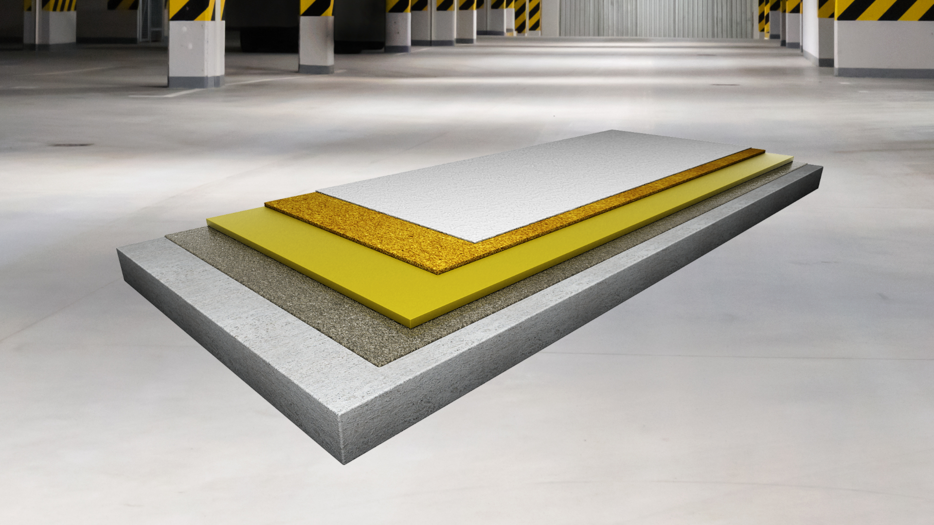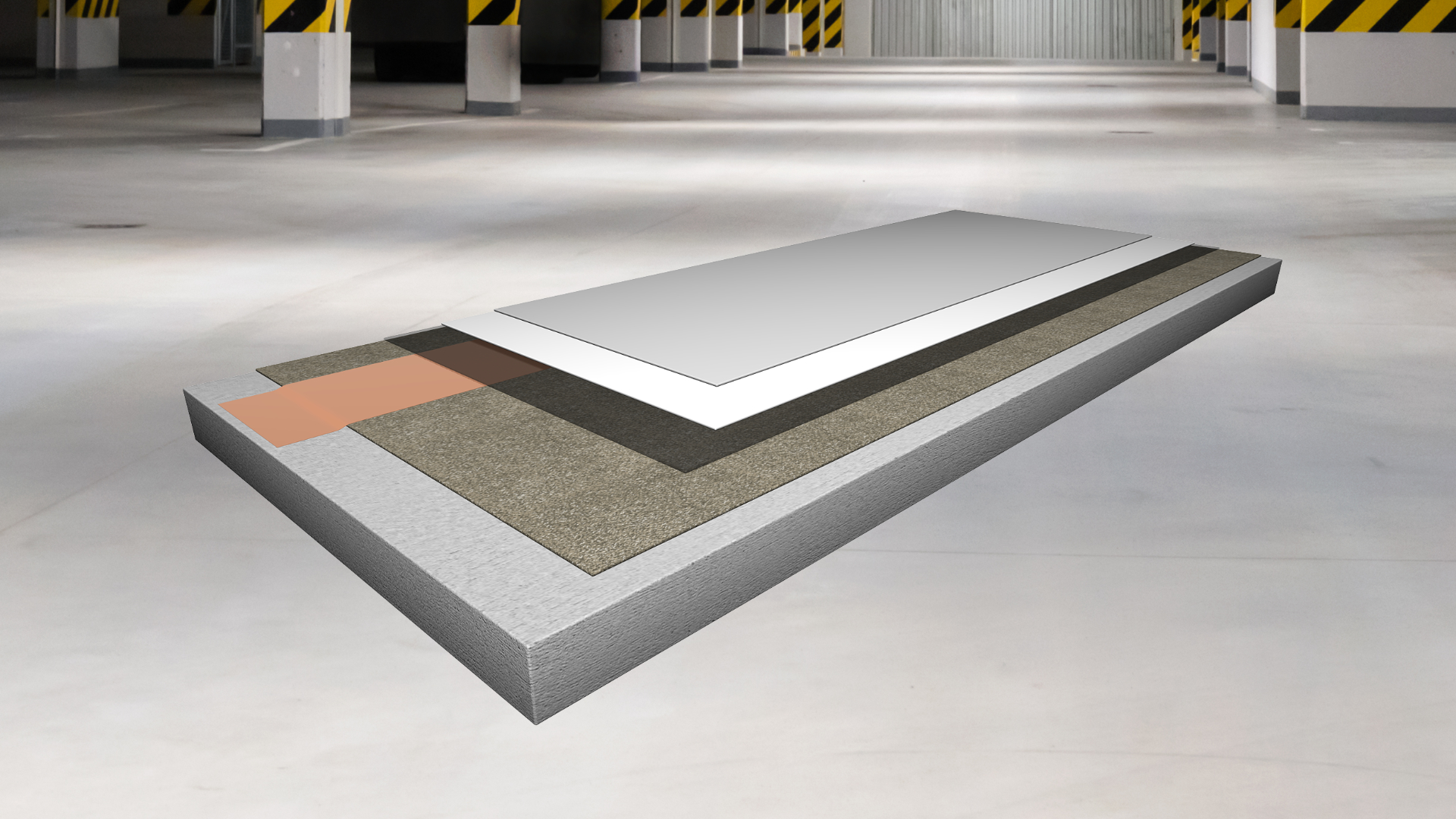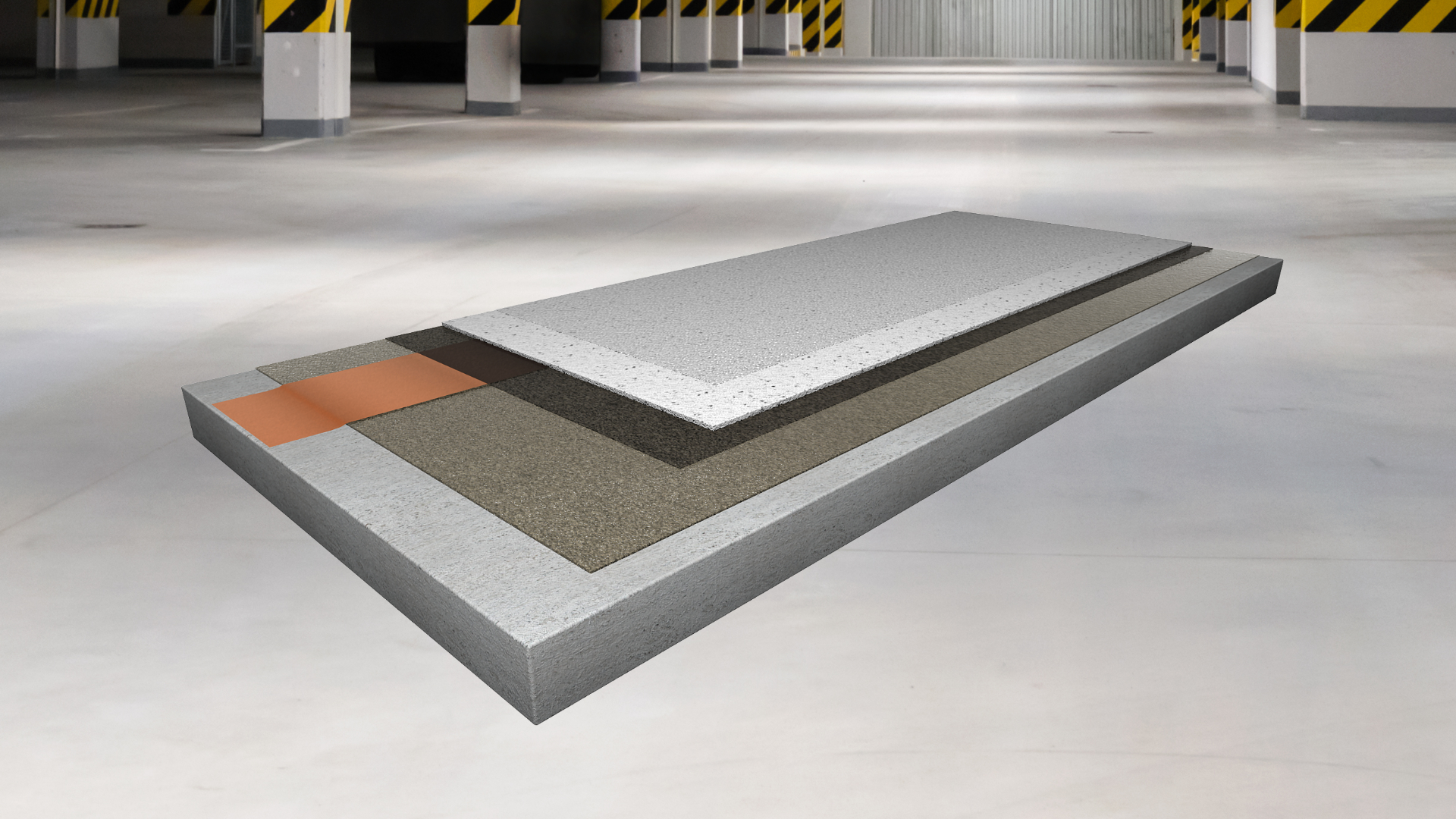 trvale pružná izolační polyuretanová, trhliny překlenující stěrková podlahovina s epoxidovou penetrační vrstvou, ´plovoucí´ elastickou mezivrstvou a finální pružnou vrstvou s křemenným plnivem, s jemně strukturním povrchem, tl. 3 – 4 mm, schopnost překlenutí dynamických trhlin do 0,5 mm i za minusových teplot (třída B 4.2) vhodná i pro exteriérové aplikace (např. pojížděné střechy)